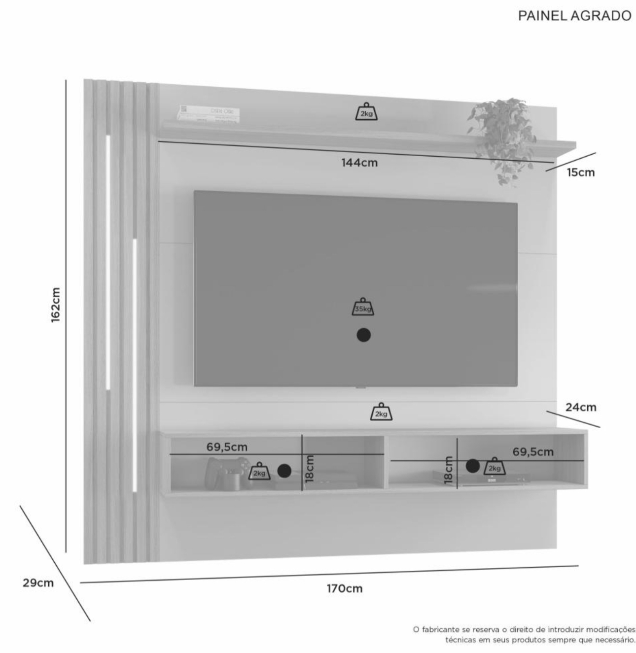 -Espaço para TV: 1540mm x 990mm (LxA)